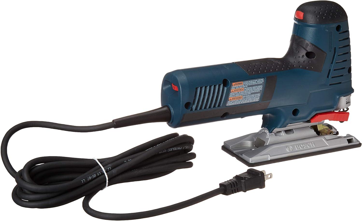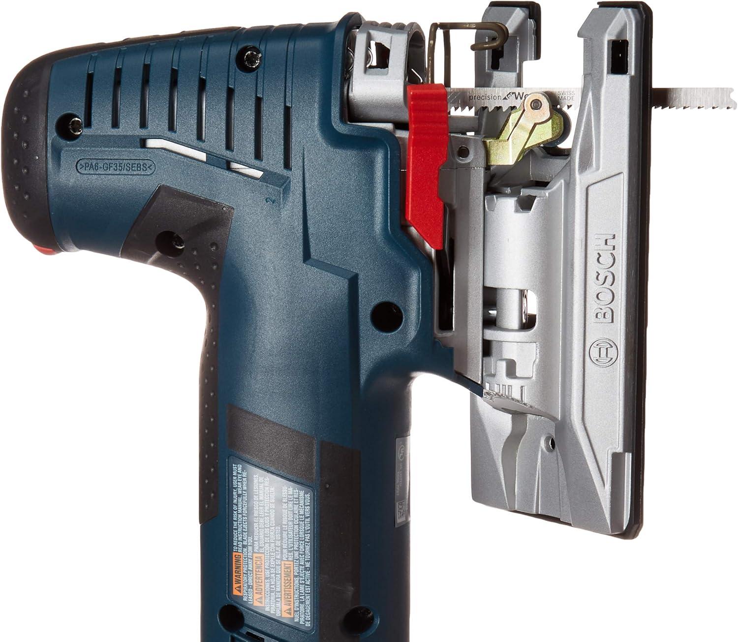 The BOSCH JS572EBK Barrel-Grip Jig Saw Kit provides a tool with an upgraded upfront soft-grip area; it has the smallest circumference in its class. Thanks to the innovative Precision Control II double-roller system, it has outstanding cut accuracy, which minimizes blade deflection. Woodworkers and kitchen and bath installers are among the many user groups will appreciate the best-in-class 7.2 amp motor and variable-speed control. Built with an aluminum gearbox with an insulated cover, this jig saw comes with a counterbalancing mechanism for low vibration and Constant Response circuitry for consistent speed under load. It has a large die-cast aluminum footplate with tool-free adjustment for fast and easy bevel adjustments. It also has LED lighting and a dust blower for max cut-line visibility and a toolless blade-change system. The multidirectional blade clamp provides superior grip of T-shank blades. (BOSCH jig saws do not accept U-shank blades.) Kit Includes: (1) JS572 Jig Saw; (3) Assorted Jig Saw Blades; (1) Anti-Splinter Insert; (1) Plastic Shoe; (1) Carrying Case.