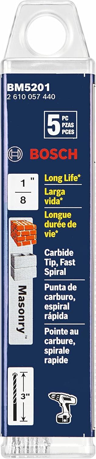 he Bosch Fast Spiral Rotary Masonry Drill Bit delivers fast drilling in masonry, using corded or cordless rotary drills. (This bit is for use in rotary drills only, not for hammer drills.) The bit features a single-flute design that provides fast drilling with optimized material removal. It can be used in high-speed mode. The carbide tip adds durability and minimizes wear. Designed for rotary drilling in masonry, brick and block, the bit starts clean, with a tip that is designed for reduced walking.