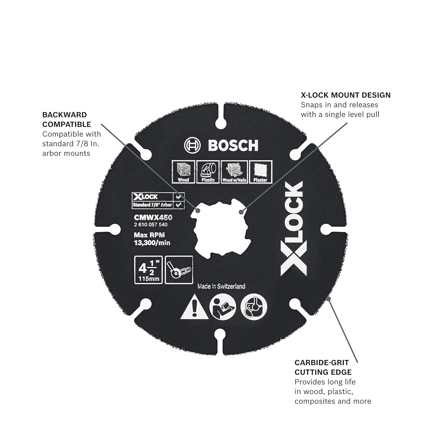 Backward compatible – Bosch X-LOCK carbide multi-wheels are backward compatible with standard 7/8 In. arbor mounts