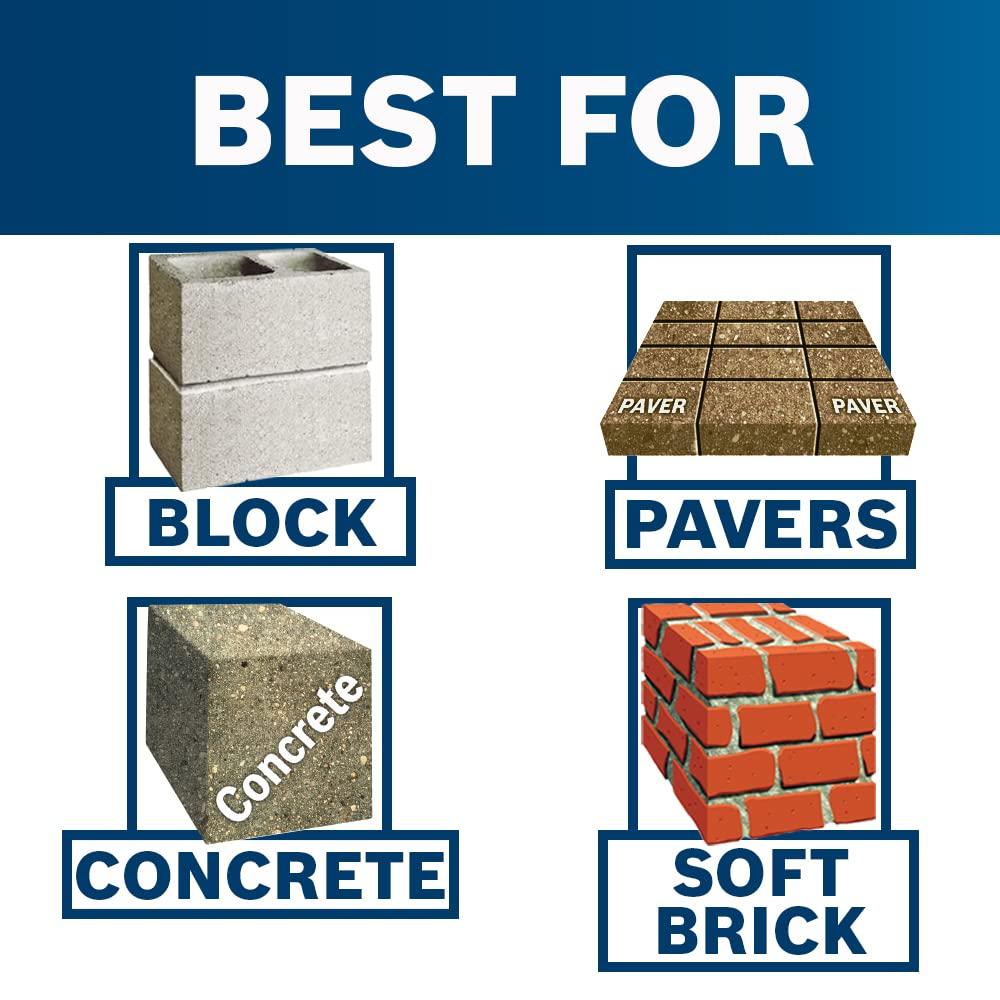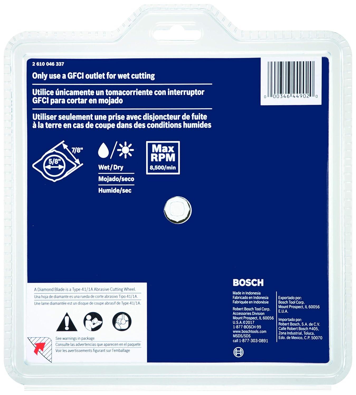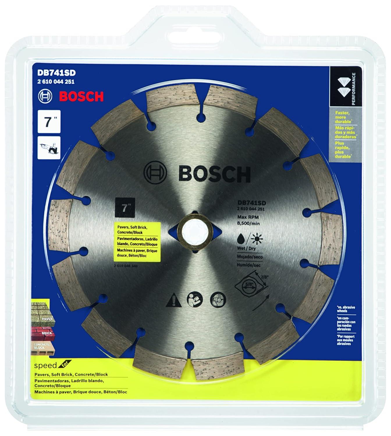 Bosch® has improved diamond size and quality to deliver fast cutting and provide consistent diamond content and even distribution. This blade is designed with taller segment height for longer life and constructed to cut faster and last longer than an abrasive wheel. These jobsite-proven extreme segmented rim diamond blades are produced to Bosch®-quality specifications, and their applications include cutting in pavers, soft brick, and concrete/block.