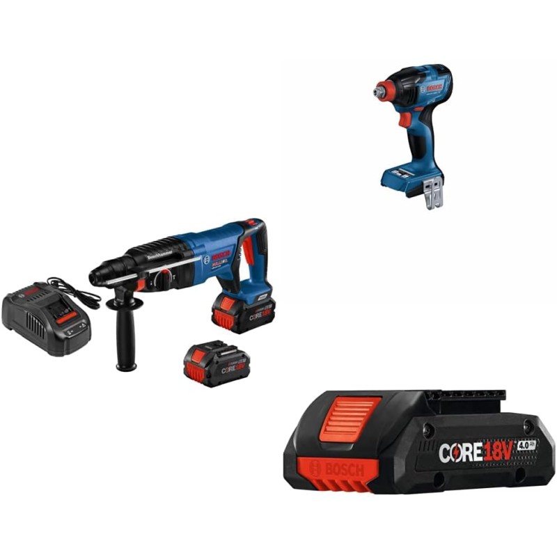 This Bosch D-handle Bulldog™ hammer consistently outperforms the best-selling 1 In. corded 11255VSR Bulldog™, making it better than the best. The GBH18V-26DK24 18V EC Brushless 1 In. SDS-plus® Bulldog™ Rotary Hammer Kit features a hammer that delivers 1.9 Ft.-Lbs. of impact energy, based on the industry standard of measurement agreed upon by the European Power Tool Association (EPTA). It weighs only 5.8 Lbs. (tool only, not including battery), delivering superior performance and an outstanding impact-to-weight ratio. The kit features two CORE18V Performance Batteries, which deliver 2X the power and runtime as two-layer 4.0 Ah batteries with minimal increase in volume and weight. They are engineered with 21700 cell technology. Bosch engineered the exclusive CoolPack 2.0 technology to manage the heat of the higher power-density cells. The hammer’s EC Brushless motor maximizes battery runtime for extended performance. The tool features a jobsite-proven D-handle design with soft-grip and is ideal for overhead, horizontal and downward drilling applications. It also has KickBack Control and a variable-speed reversing trigger for accurate bit starting. The Bosch GDX18V-1860C Two-in-One Cordless Impact Driver/Wrench provides one tool for use with bits and sockets. It goes from impact wrench to impact driver fast. The two-in-one bit/socket drive increases both convenience and power. Bits can stay conveniently inserted when using deep sockets, and more torque is transferred directly thru the 1/2 In. square drive anvil. There is no more torque loss through socket adapters or broken socket adapters. The impact driver/wrench’s efficient, powerful brushless motor produces up to 1,860 In.-Lbs. of torque and 0-4,100 impacts per minute. In addition to three speed/torque settings this impact driver/wrench also features special modes to prevent work piece and fastener damage. The presets include modes for self-drilling metal screws and wood screws. Additional modes and customizations for specific screws and materials can be set and saved to the tool via the Bosch Toolbox App (connectivity module sold separately). In reverse, with bolt mode activated, the Auto Bolt Release stops rotation when there is no load on the tool to prevent accidentally dropping bolts and nuts during removal. In addition to customizing settings and modes, connectivity (module sold separately), provides tool specific information and feedback. The variable-speed trigger provides accurate driving speed. It also has an LED light system to illuminate the work area. The Bosch CORE18V 4.0 Ah Compact Battery is designed to keep the power and runtime, while losing the weight. The GBA18V40 single-layer battery features advancements in design to reduce resistance and increase efficiency, to improve the performance-to-weight ratio of tools used on the jobsite all day. The battery is a truly flexible power system providing compatibility with a full range of Bosch 18V Li-ion cordless tools. The GBA18V40 is engineered with 21700 cell technology, matching the power from the original two-layer 4.0 Ah battery with improved performance per cell. The Bosch-exclusive CoolPack 2.0 heat-management system results in 15% faster cooling and 135% longer life compared to previous non-Bosch CoolPack 18V batteries.