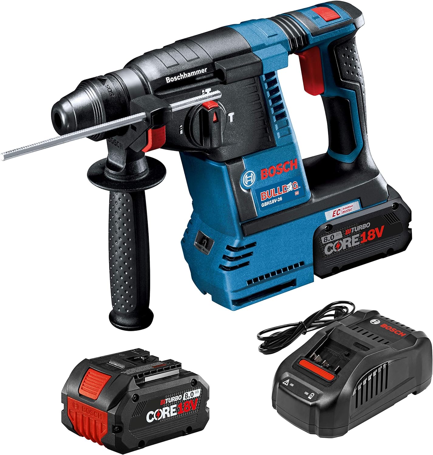 Bosch GBH18V-26K24A 18V Brushless SDS-plus® Bulldog™ 1 In. Rotary Hammer Kit with (2) CORE18V 8.0 Ah Performance Batteries(Kit with (2) 8ah batteries)