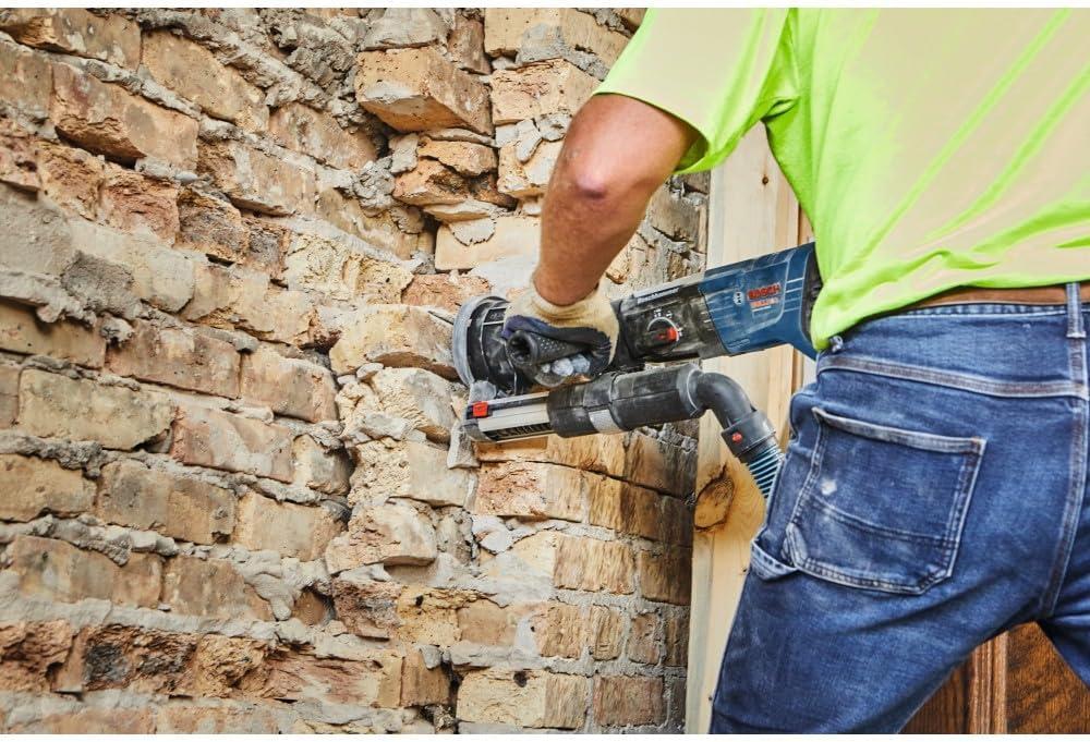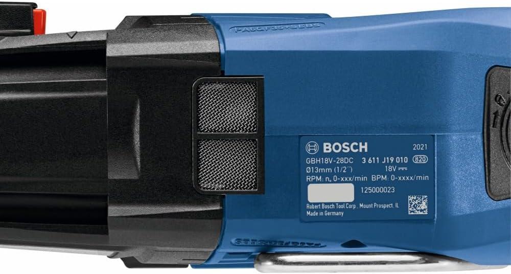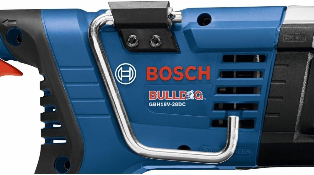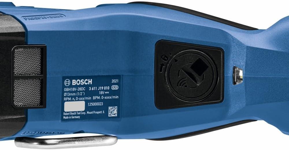 This 18V Bosch Bulldog™ hammer provides superior performance and an outstanding impact-to-weight ratio. The GBH18V-28C 18V Brushless SDS-plus® Bulldog™ 1-1/8 In. Rotary Hammer delivers 2.6 Ft.-Lbs. of impact energy (EPTA). It weighs only 7.3 Lbs. without battery. The hammer’s brushless motor maximizes battery runtime for extended performance. It has KickBack Control technology, which helps reduce the risk of sudden tool reactions in binding conditions, and an anti-vibration system for maximum comfort in extended work applications. The L-shaped design provides better control for both overhead and horizontal drilling applications. The 360-degree side handle provides a variety of grip positions for maximum user comfort. The hammer features Vario-Lock to rotate and lock the chisel. This hammer features Bluetooth® connectivity (which connects with Connectivity Tool Module sold separately), linking the free Bosch Toolbox app on any connected device for easy customization of one of three different working modes (Auto, Favorite, Soft) to ensure the right setting for any job. And it has a user interface, which is an on-tool display that helps manage tool performance for immediate feedback and control. The GBH18V-28C is compatible with the GDE18V-16, a Dust Collection Attachment (sold separately), delivering a state-of-the-art mobile dust solution for drilling holes overhead into concrete and throughout the jobsite. This kit includes two CORE18V® 8 Ah High Power Batteries and an 18V Fast Charger to keep you power-ready on any job.