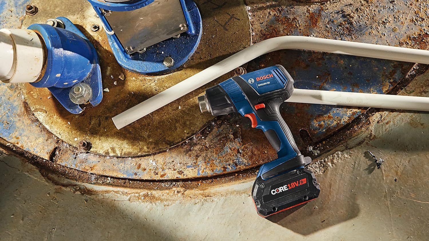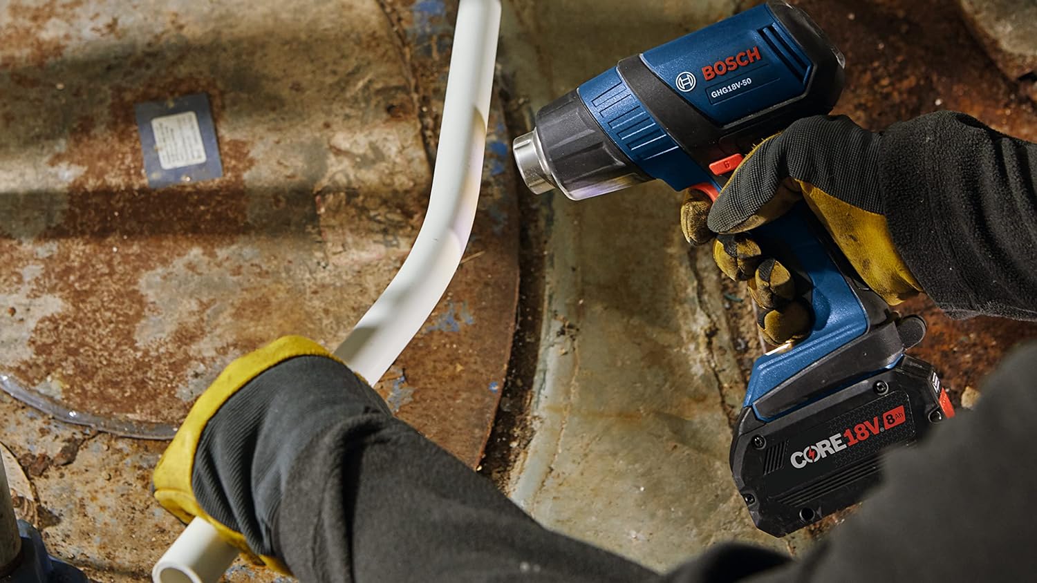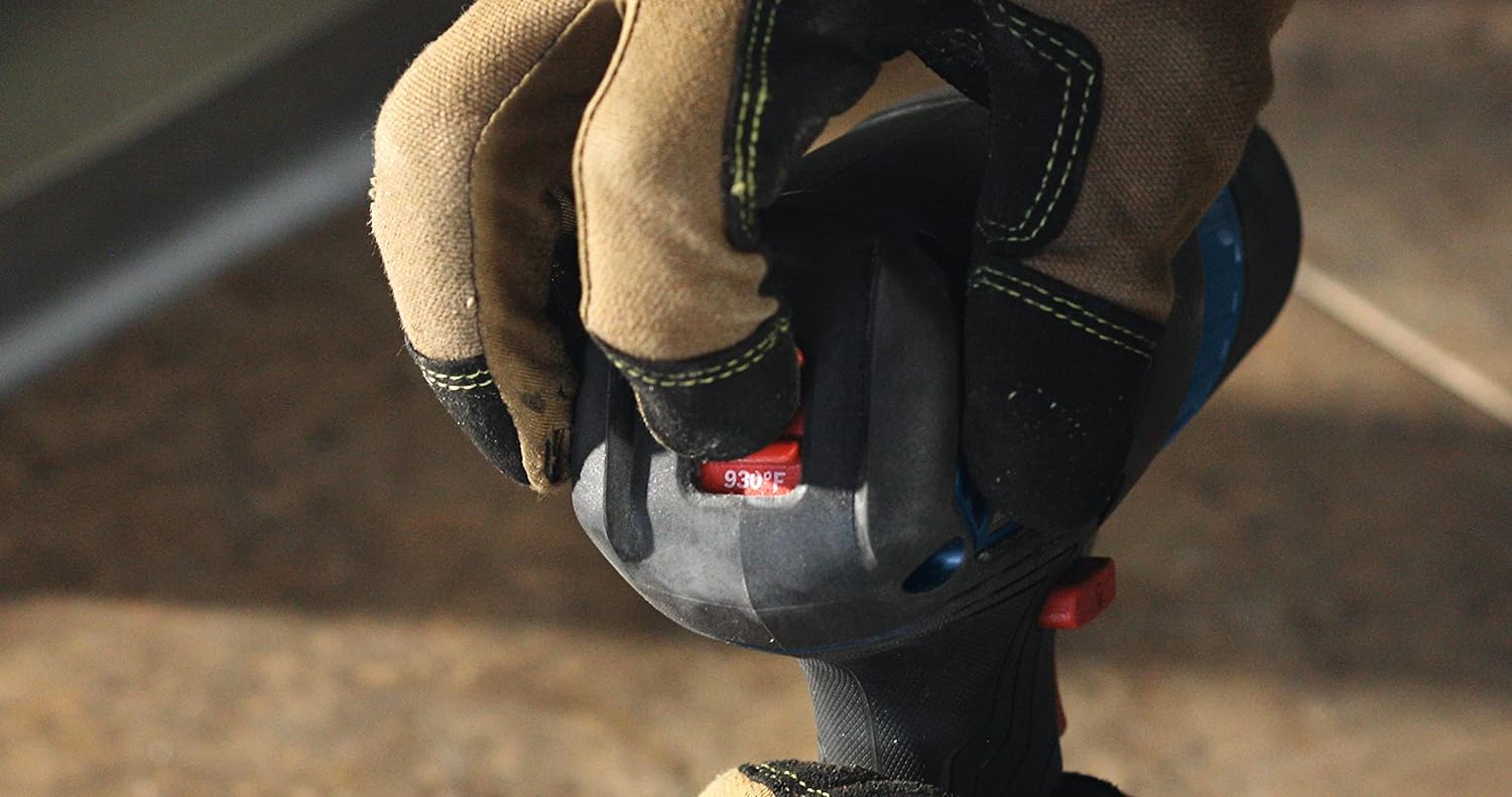 The Bosch GHG18V-50 18V Heat Gun delivers fast heat-up time, heating up to 570°F within six seconds to maximize working time on the jobsite. It features a reduction nozzle, which provides concentrated heat flow. It also has a hook nozzle, which supplies directed hot air around surfaces for even heating. It has two temperature settings – 930°F and 570°F – to cover a variety of applications. When paired with the CORE18V® 8 Ah battery it provides a runtime of up to 21 minutes at 570°F. It provides a max airflow rate of 175 liters per minute for efficient heating. The heat gun features an LED worklight, a lockout switch to help prevent accidental activation and an ergonomic grip zone. This heat gun is ideal for electricians, automotive technicians and others for heat-shrinking wires, removing labels, softening adhesives, bending plastic pipes and more.