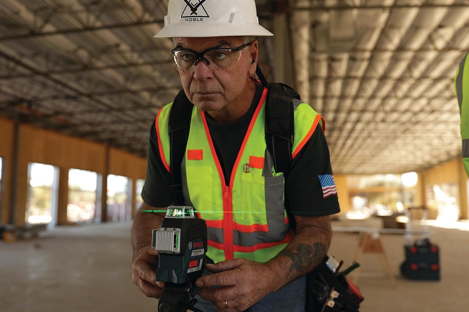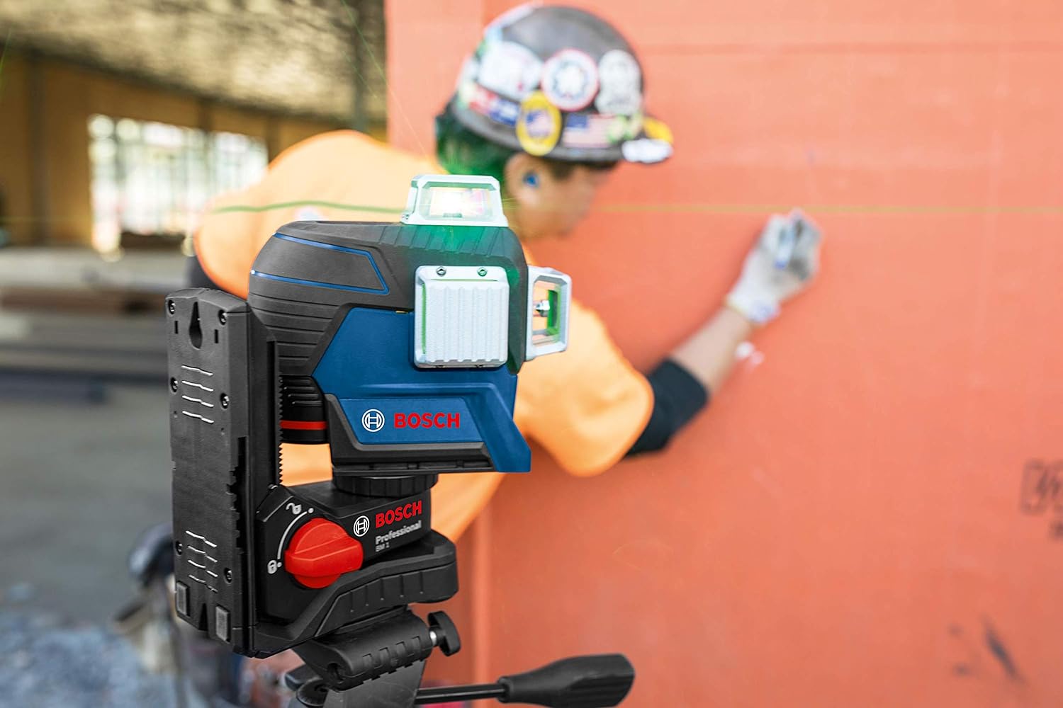 COMMERCIAL GRADE — One of Bosch’s most popular 3-planes laser levels for construction. Excellent laser level tool for most commercial projects indoor and certain outdoor conditions. Projects highly visible and accurate green laser chalk lines. Ideal for projects that require precise leveling, plumbing, and squaring measurements from floor to wall to ceiling. For dual power technology, the included Bosch 12 V Max Lithium-ion battery comes with a charger so you can quickly replace & recharge when necessary. Also comes with a built-in over-molded construction IP54 to ensure splash water/dust protection for years of dependable operation.