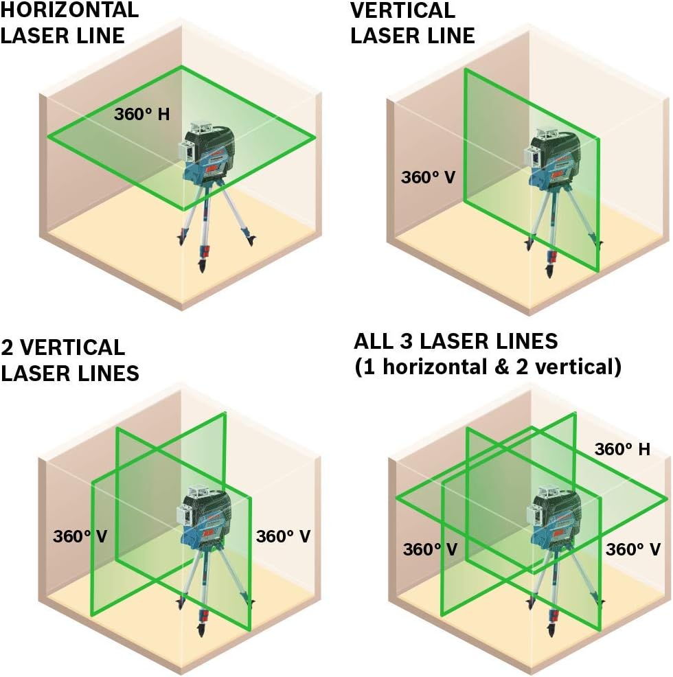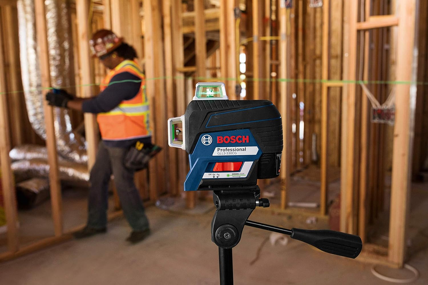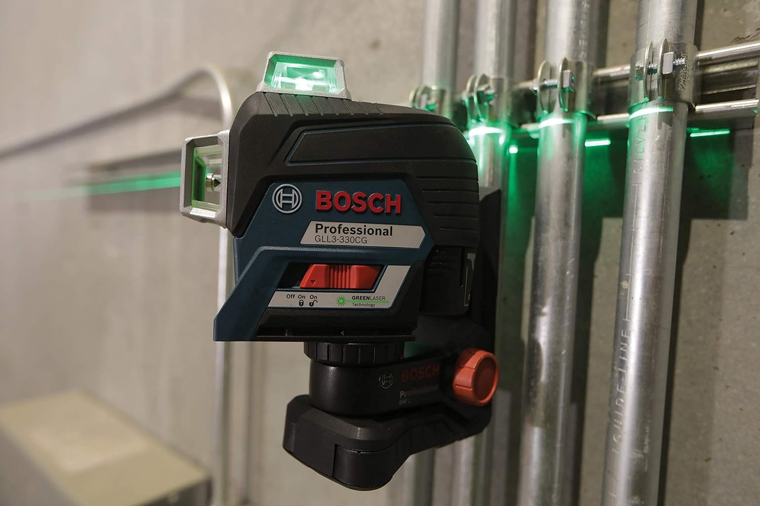 Bosch GLL3-330CG 200ft 360-Degree Green Beam Three-Plane Self-Leveling & Alignment-Line Laser with (1) 12V Max Lithium-Ion 2.0 Ah Battery Charger, BM1 Positioning Device Hard Carrying Case(12V Green 3-Plane Line Laser + Mount Standard Packaging)