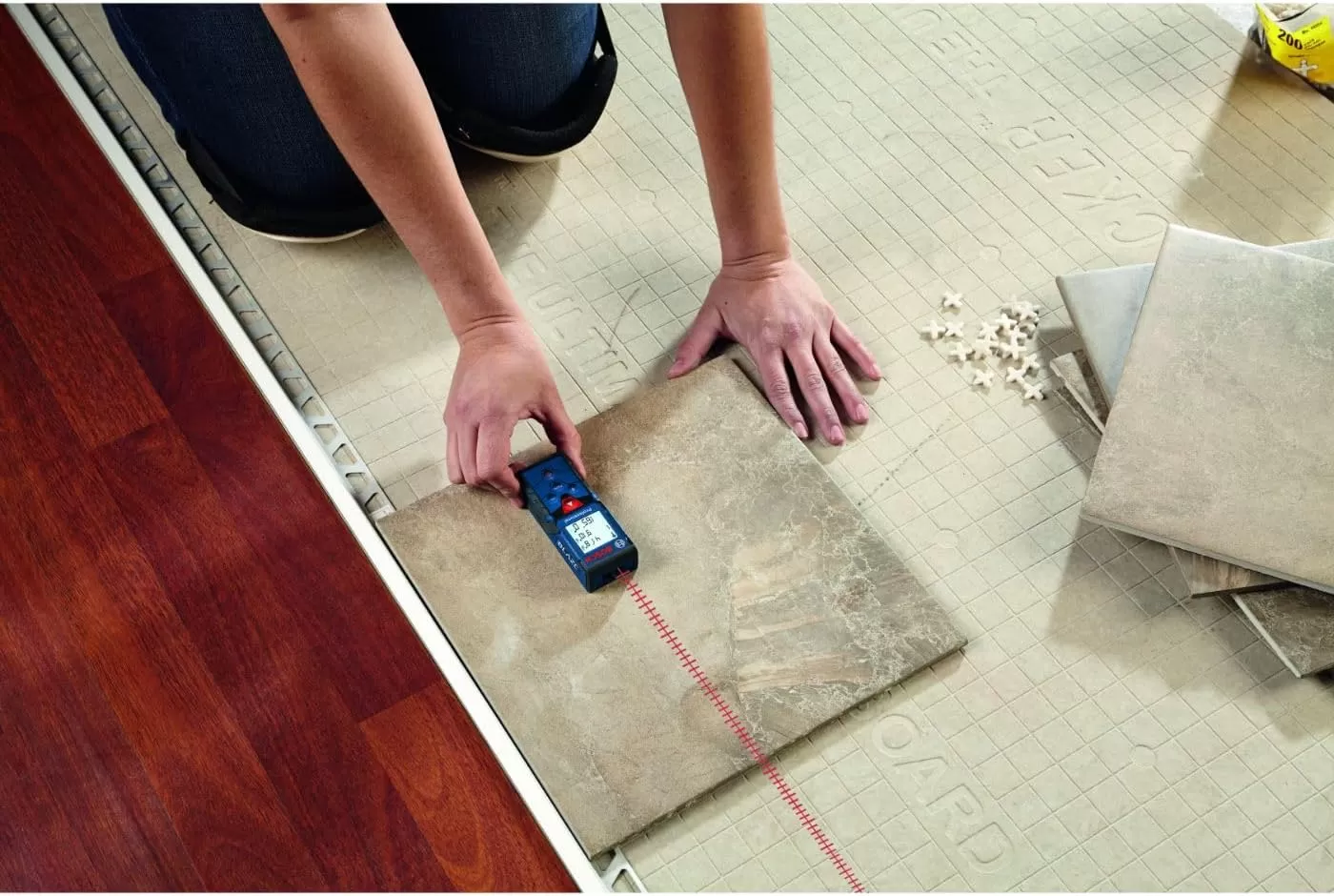 AUTO SQUARE: The Bosch GLM165-40 laser measure includes auto square function to automatically calculate square footage with the push of a button.
