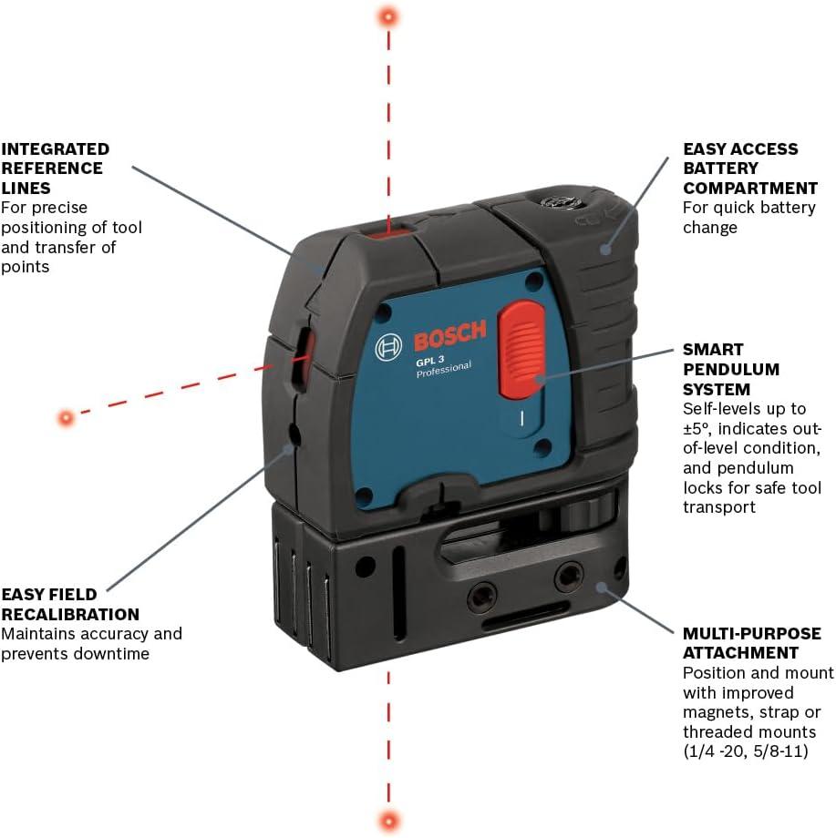 DURABLE: The rugged Bosch GPL 3 is durable and tough with a robust over-molded housing. Its water and dust resistant to ensure years of dependable operation, at the jobsite or a remodel.