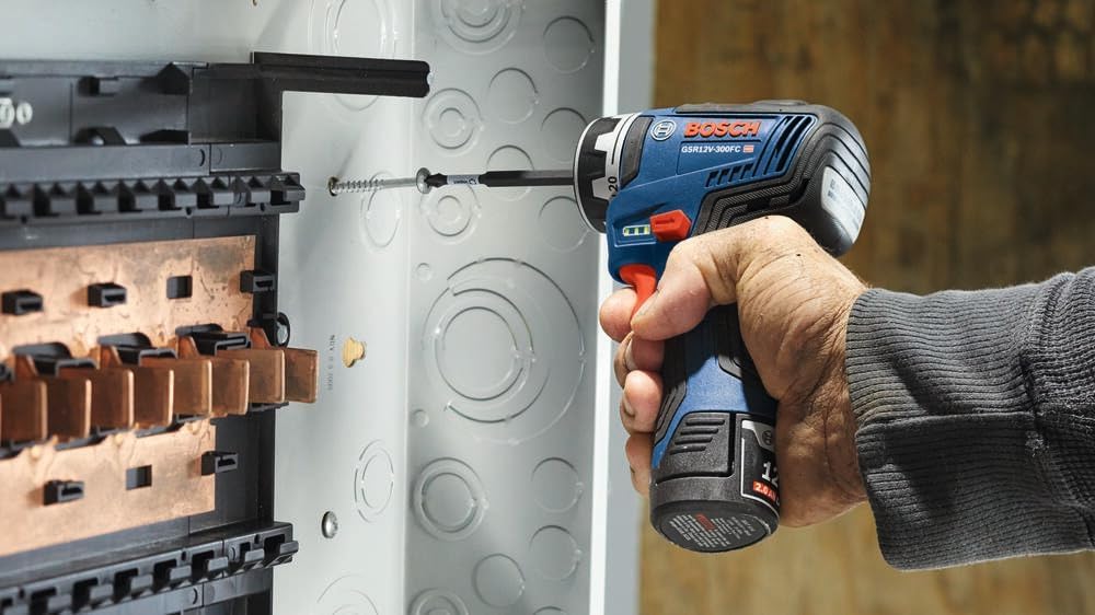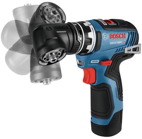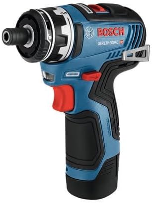 This BOSCH 12V Max Flexiclick 5-In-1 Drill/Driver System features an efficient EC Brushless motor for max runtime and upgraded power – 300 In. -Lbs. of torque. The GSR12V-300FC is designed for professionals who want a high-quality tool that redefines their limits to get the tough jobs done. At only 1. 2 Lbs. (tool only, not including battery) and a max speed of 1, 750 rpm, this robust drill/driver delivers the performance you expect in the size you want. It has two speed settings – a 0-460 rpm for high-power driving tasks and 0-1, 750 rpm for high-speed drilling. It starts with a magnetic bit holder for basic driving. The four attachments – a locking bit holder, a keyless chuck, an offset-angle and a right angle– each attach to the tool securely and easily with the One-Click interface. The right-angle attachment is for tight spaces, and it works with all three other adapters. The offset-angle attachment delivers precise screwdriving close to edges. Both of these attachments rotate to 16 positions without removing them. The locking bit holder attachment locks hex bits for high-torque drilling, while the keyless chuck provides locked-in drilling.