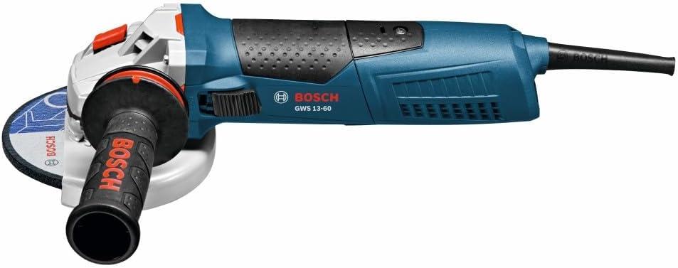 The Bosch GWS13-60 6- In. Angle Grinder delivers more power than previous-generation models – 13 amps and 9,300 RPM. The grinder has constant electronic circuitry for soft startups, smooth operation and dependable speed under load. For longer tool life, it has directed air flow that diverts dust away from vital components, and it has direct-motor cooling, giving it higher overload capabilities. It features a two-position Vibration Control side handle, making it less fatiguing for the operator to use. For safety, it has an integrated acceleration sensor to limit inadvertent recoil and restart protection to protect against unintended startup. It has a burst-protection quick toolless adjustable guard and a large spindle lock for a more convenient disc change. The Service Minderbrushes stop the grinder when preventative maintenance is required.