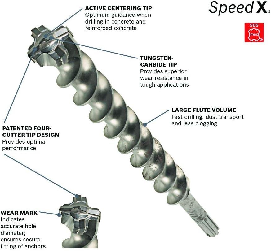 BOSCH HC5091 1-1/2 in. x 21 in. SDS-max Speed-X Carbide Rotary Hammer Bit for Concrete Drilling(1-3/8 in)