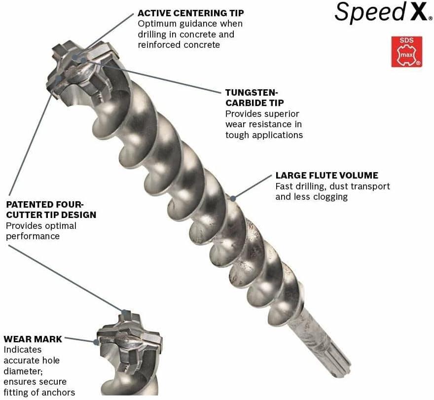 BOSCH HC5091 1-1/2 in. x 21 in. SDS-max Speed-X Carbide Rotary Hammer Bit for Concrete Drilling(3/8 in)