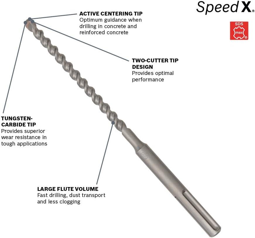 BOSCH HC5091 1-1/2 in. x 21 in. SDS-max Speed-X Carbide Rotary Hammer Bit for Concrete Drilling(3/8 in)