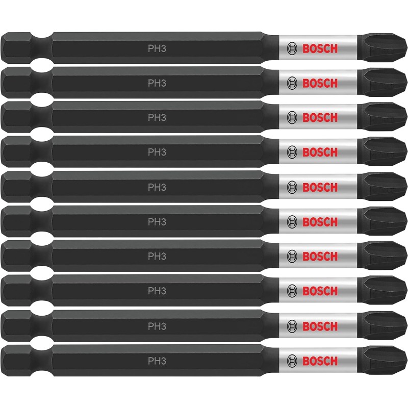 BOSCH ITPH2202 2-Pack 2 In. Phillips #2 Impact Tough Screwdriving Power Bits(3-1/2 In. Phillips #3 Power Bits)