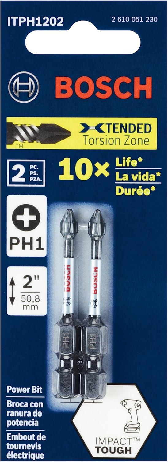 Bosch Impact Tough™ Impact Driver Bits have been upgraded to deliver 10X life over standard impact bits. With an Xtended Torsion Zone, precision engineering and heat-treated manufacturing process, these bits deliver tough torque and power for longer – and with less cam out. These Impact Tough™ bits are an impact-rated line of screw driving bits, double-ended bits, nut setters, sockets and bit holders that have been enhanced to handle a new generation of higher torque impact drivers. These bits also come with high-visibility sleeves for greater user convenience.
