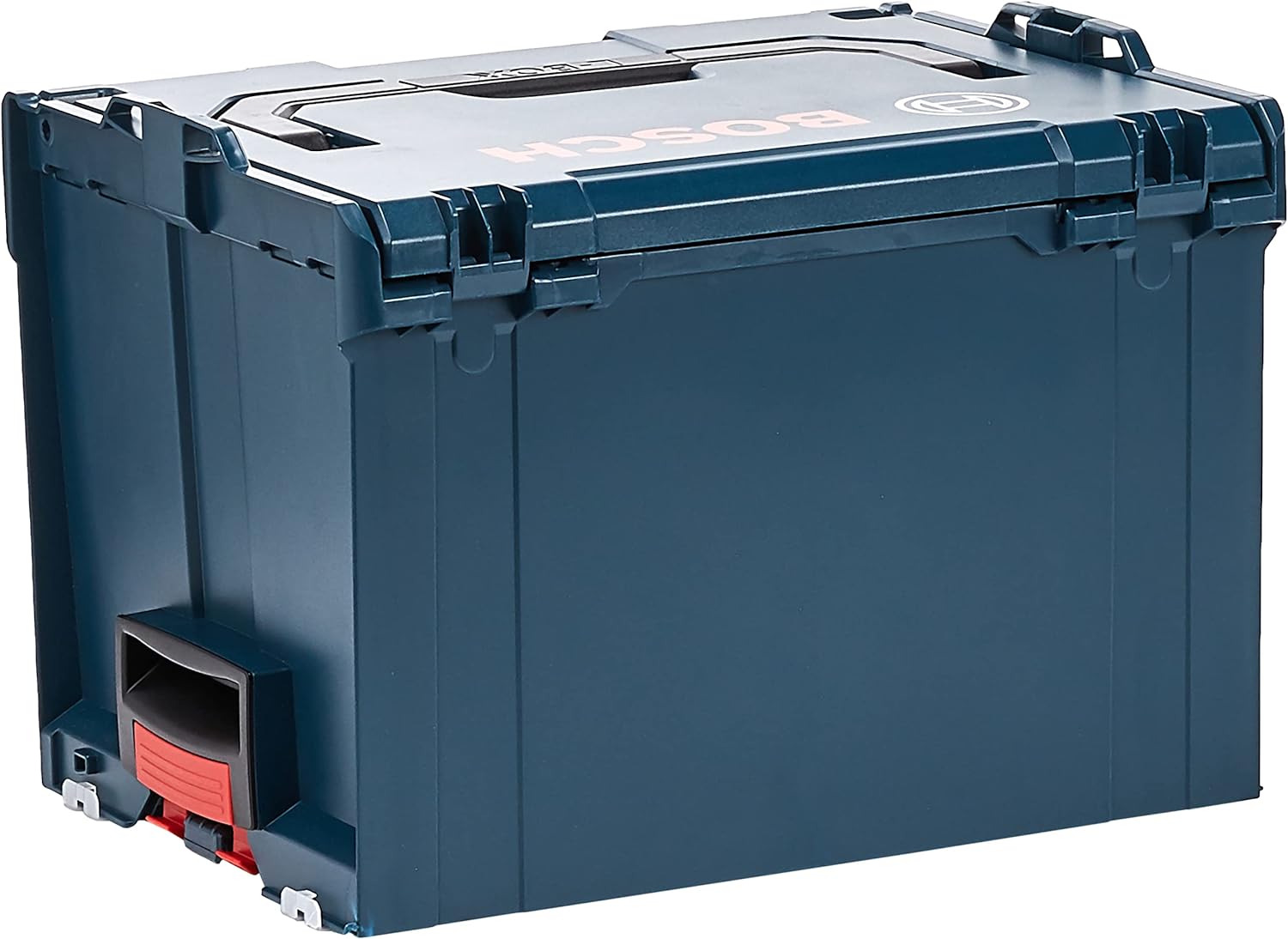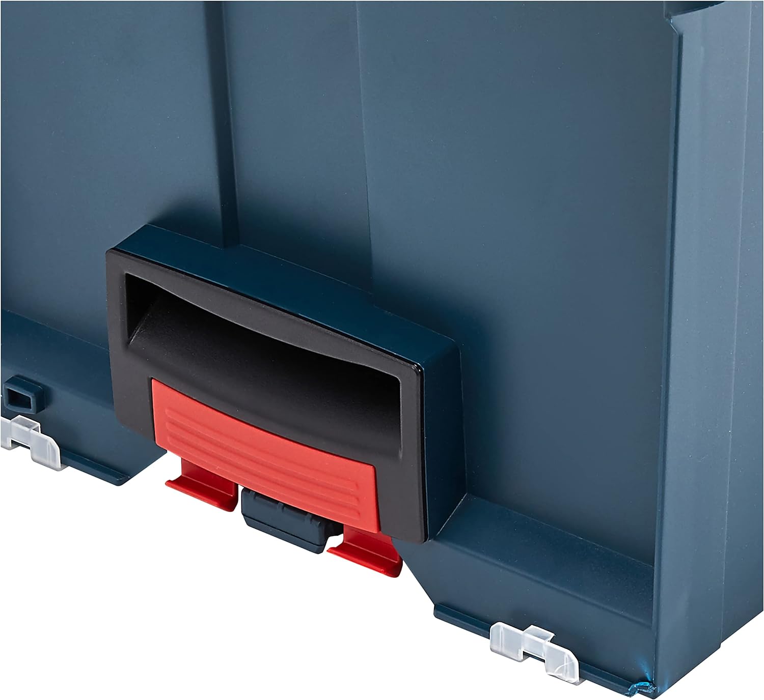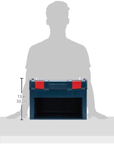 Consolidate your workshop, get organized and make traveling from job site to job site easier with the BOSCH Medium Tool Storage with Drawer Space. This tool case features an open bottom bay suitable for multiple types of L-Boxx trays, which lets you easily arrange your entire storage system. Designed for durability, the Bosch stackable tool carrying case has a high-density plastic construction that can withstand most job site environments.Letting you completely customize your tool storage, the system features a traditional top opening with drawers compatible with different organizers and inserts. Click and GO stacking makes transporting, handling or storing the Bosch job site tool storage case convenient as it easily stacks and locks onto other L-Boxx cases. The case has both top and side handles, making the box comfortable to carry.