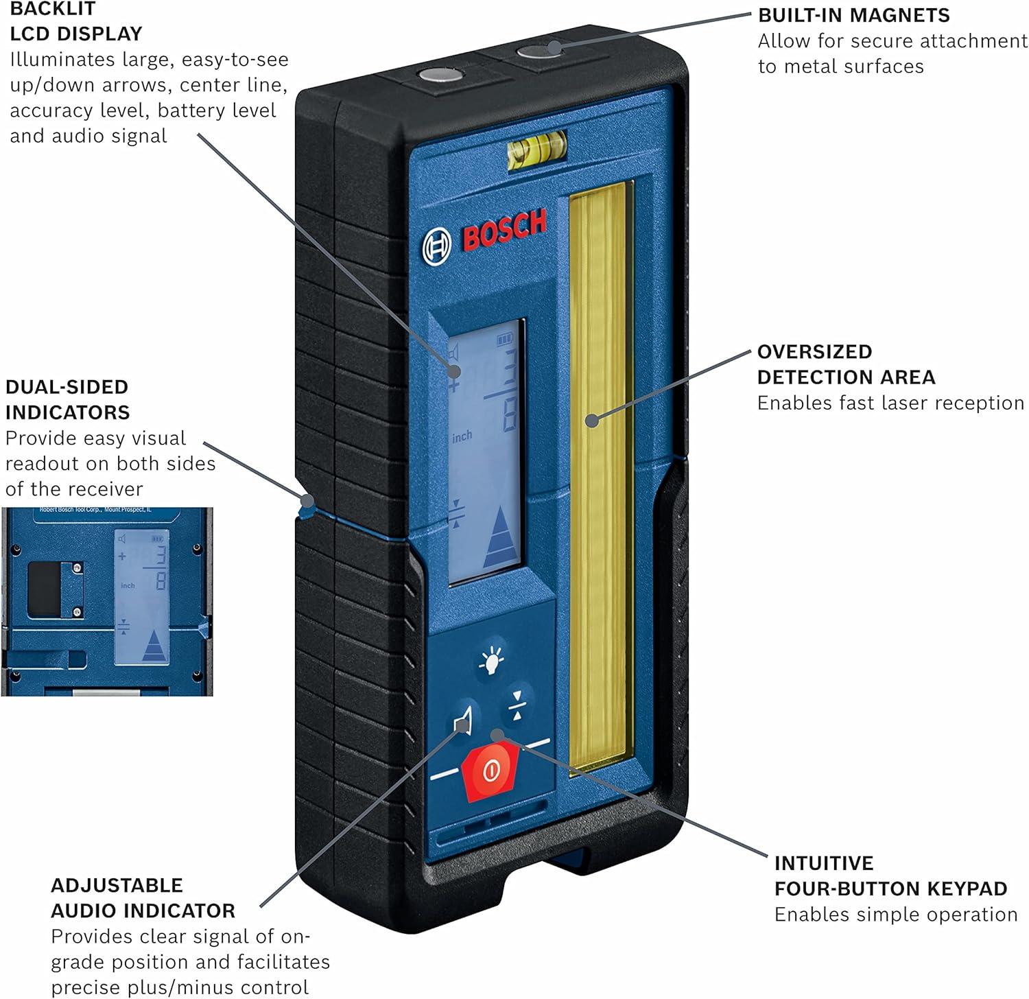 Our clearance event features the best deals on BOSCH LR1 650 Ft Red-Beam Rotary Laser Receiver, Includes Mounting Bracket & 9V Battery(1000 ft. Receiver – GREEN and RED) and accessories. Shop now!