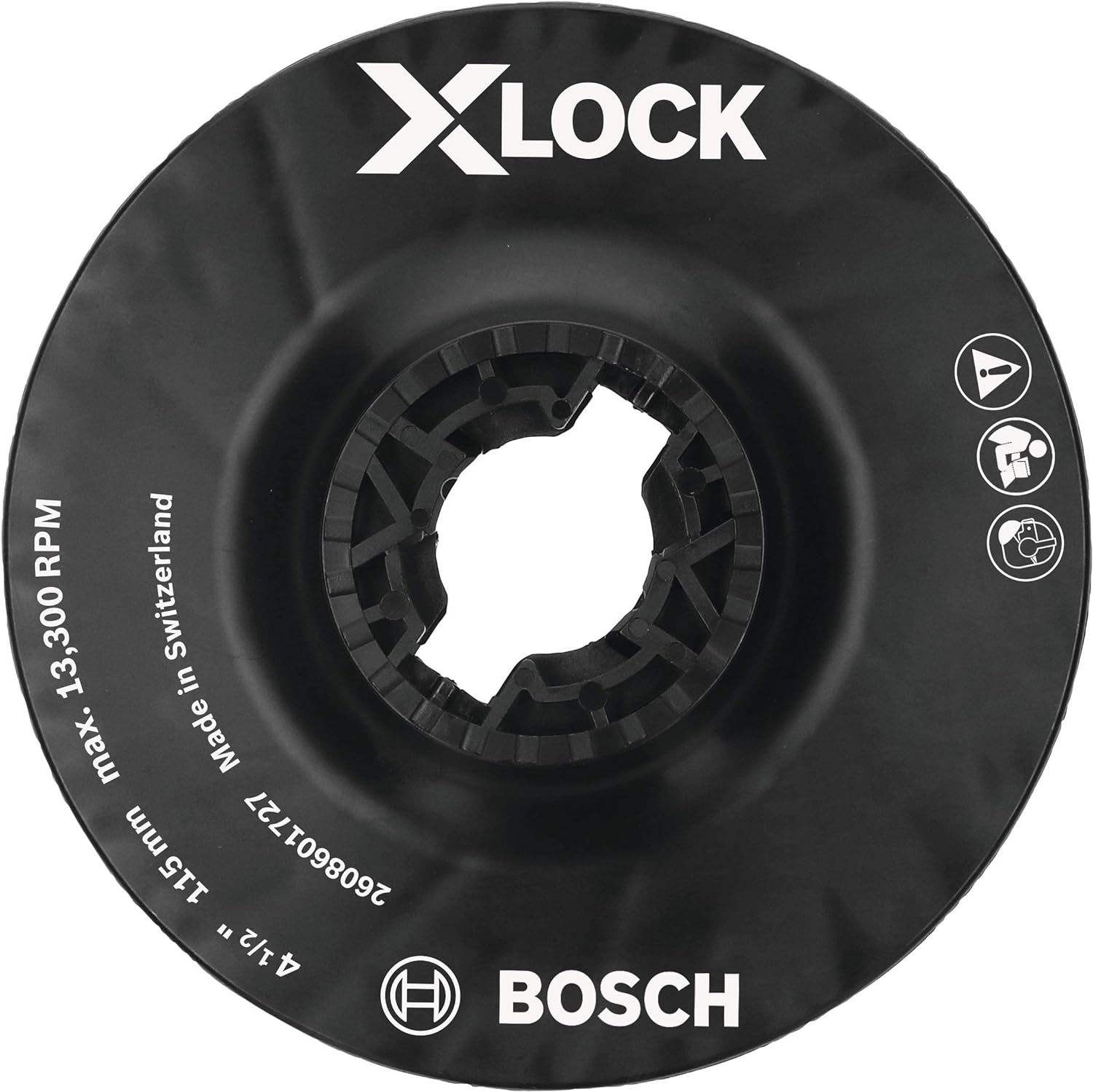 BOSCH MGX0450 4-1/2 In. X-LOCK Backing Pad with X-LOCK Clip - Medium Hardness, Use with Fiber Discs, for Applications in Metal Surface Finishing, Weld Blending, Rust Removal, Black