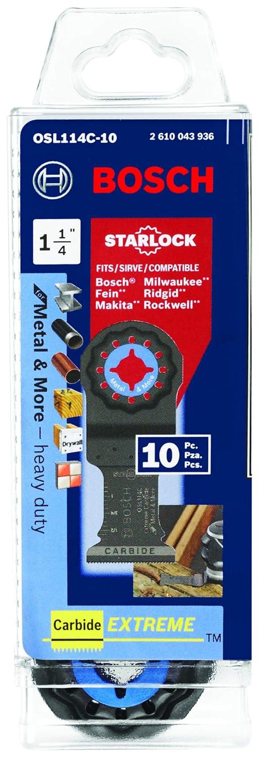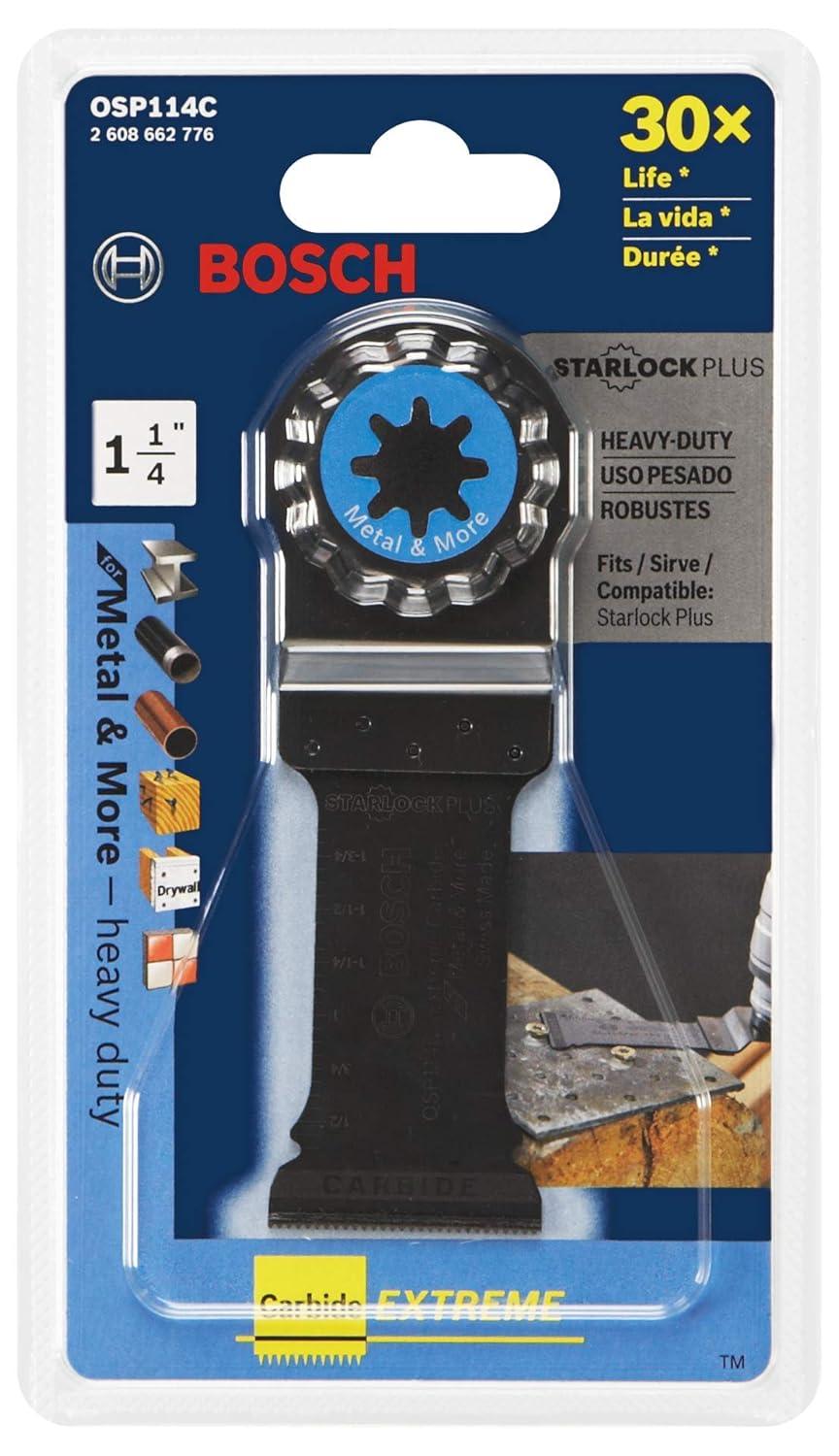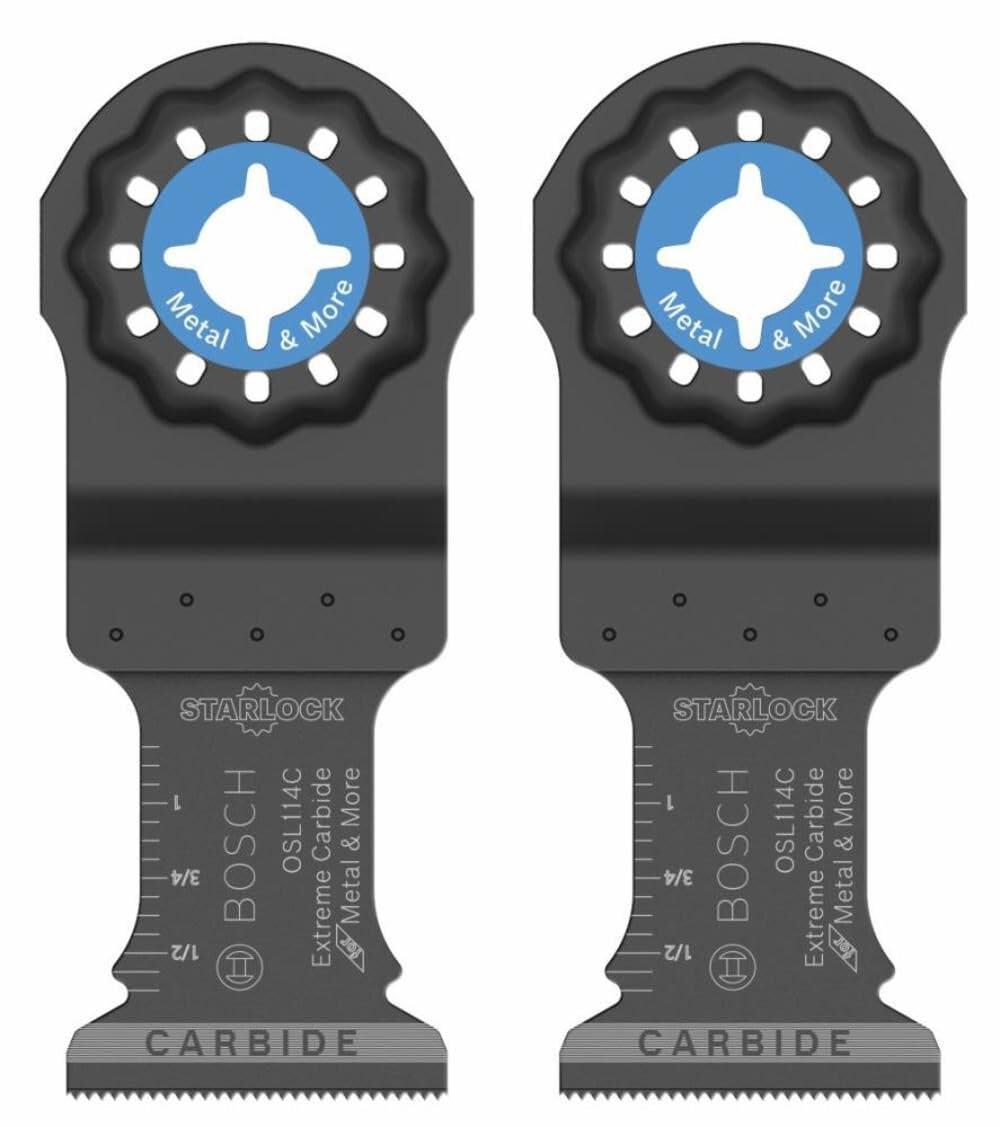 BOSCH OSL114C-3 3-Pack 1-1/4 in. Starlock Oscillating Multi Tool Metal & More Carbide Extreme Plunge Cut Blades for Cutting Iron Bar, Metal, Wood with Nails, Drywall and Tile(1-1/4 In. & 3/4 In.)