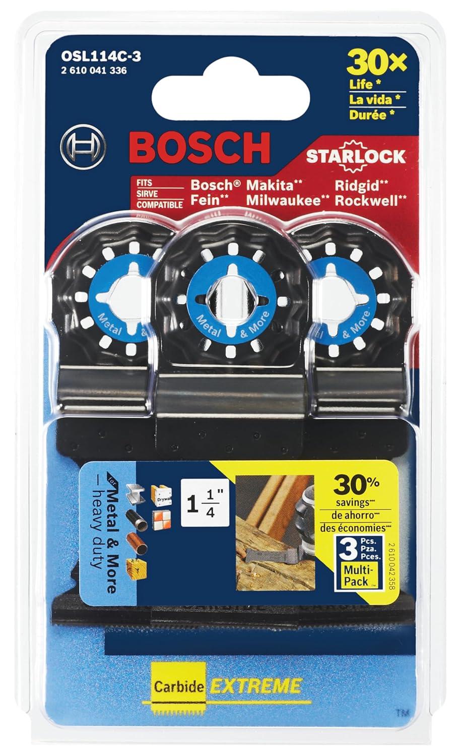 BOSCH OSL114C-3 3-Pack 1-1/4 in. Starlock Oscillating Multi Tool Metal & More Carbide Extreme Plunge Cut Blades for Cutting Iron Bar, Metal, Wood with Nails, Drywall and Tile(1-1/4 In.)