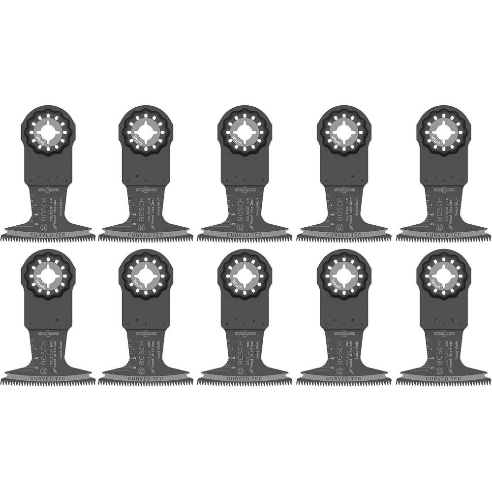 BOSCH OSL212JF-10 10-Pack 2-1/2 In. Starlock Oscillating Multi Tool Wood Curved-Tec Bi-Metal Xtra-clean Plunge Cut Blades for Applications in Cutting Hardwood