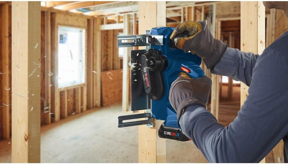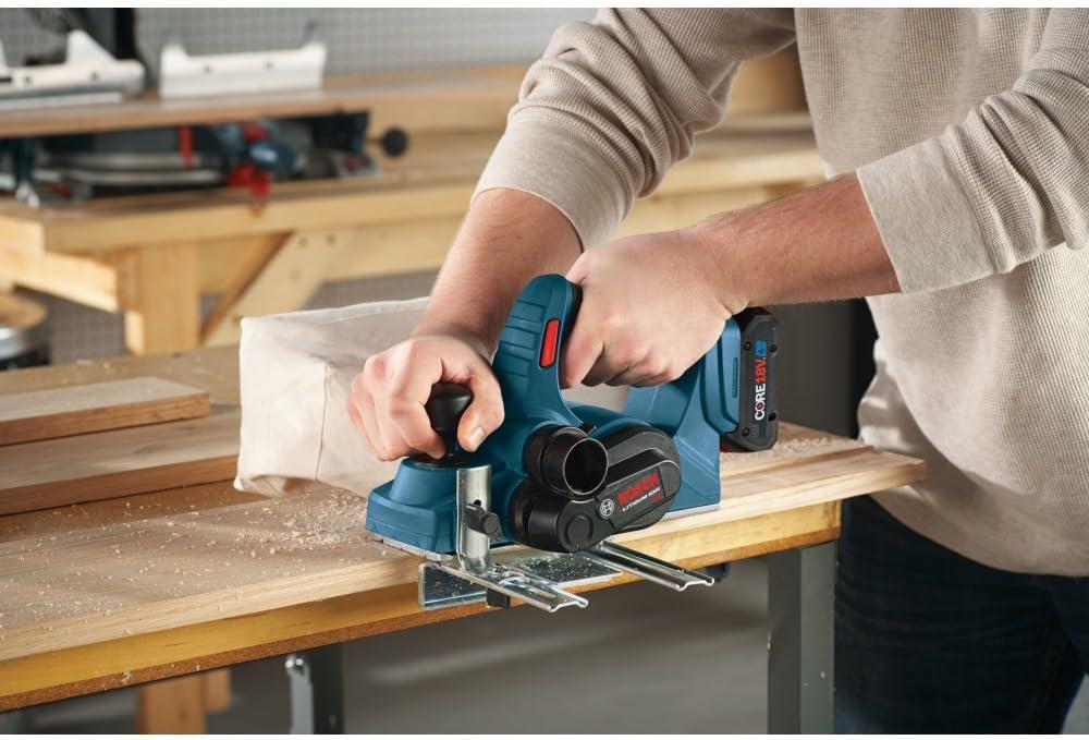 The Bosch PLH181 planer is great for fast stock removal and leaves a smooth finish. This planer is ideal for trimming doors, and because it is cordless, it eliminates the possibility of running out of cord in the middle of a planing pass. The electronically counterbalanced single-blade system automatically positions the blade at the ideal cutting angle, and it eliminates uneven planing caused by misaligned blades. The planer comes with a guide fence that can be mounted to either side of the tool. The Bosch line of cordless tools uses the industry's most advanced Lithium-Ion technology for greater battery life and more run time, all in a lighter package. Battery and charger sold separately.