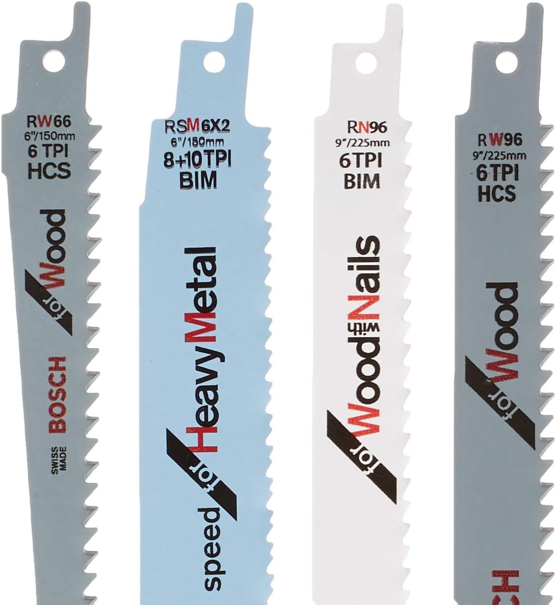 Reciprocating saw blades designed for wood with nails – incorporate bi-metal construction, reinforced 5/8 variable-pitch teeth for fast cutting and taper backs and plunge tips for easy starts