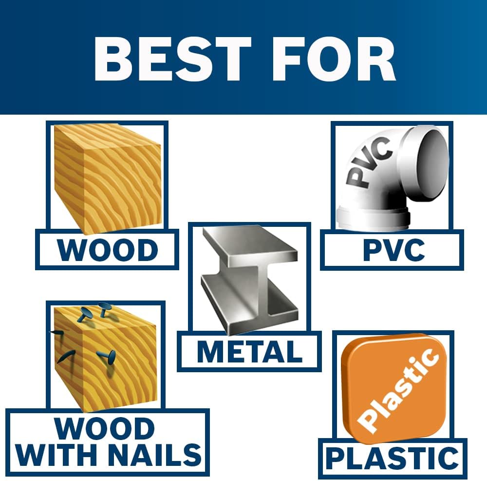 BOSCH RSAP8PK 8-Piece All-Purpose Reciprocating Saw Blade Assorted Set Ideal for Applications in Wood, Wood with Nails, Metal, Drywall, Plastic, PVC(8 Piece Set)