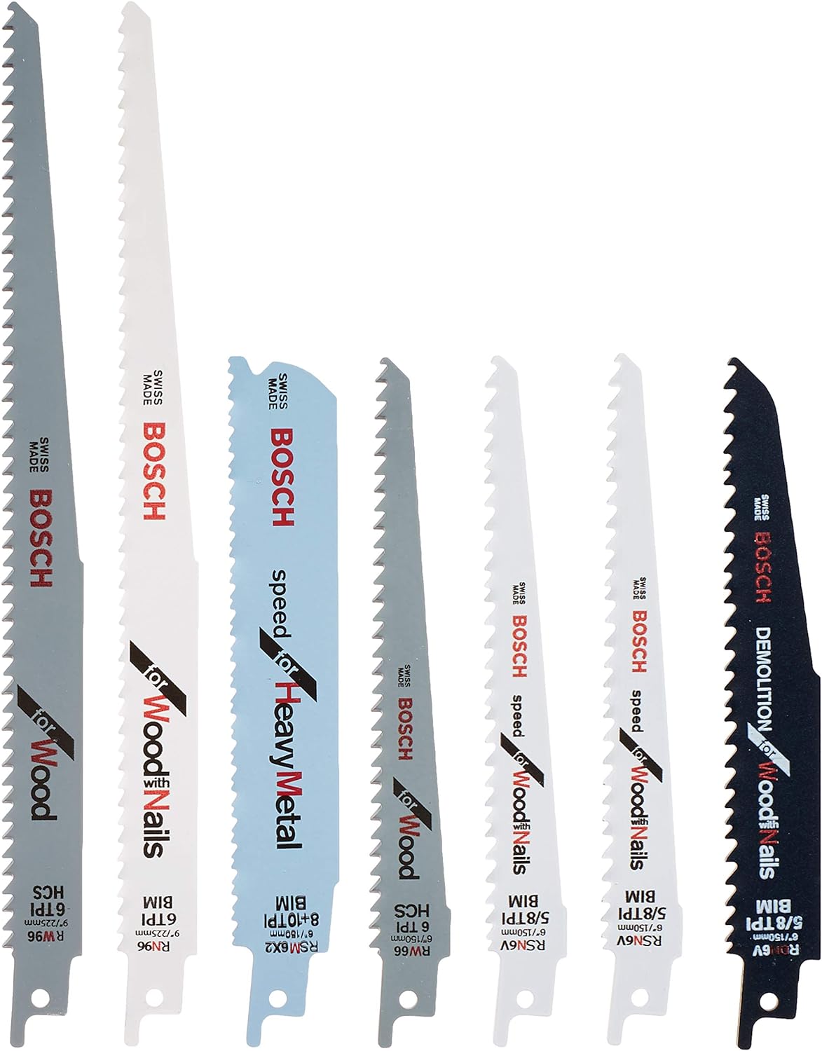 BOSCH RSAP8PK 8-Piece All-Purpose Reciprocating Saw Blade Assorted Set Ideal for Applications in Wood, Wood with Nails, Metal, Drywall, Plastic, PVC(7 Piece Set)