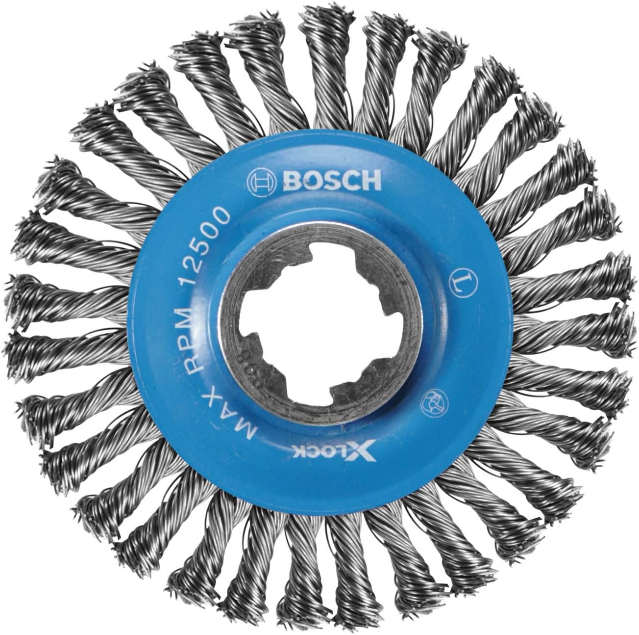 BOSCH WBX418 4-1/2 In. X-LOCK Arbor Tempered Steel Crimped Wire Wheel For Applications in De-burring, Removing Oxides, Flash Removal, Edge Blending(Stainless Steel Wire Wheel)