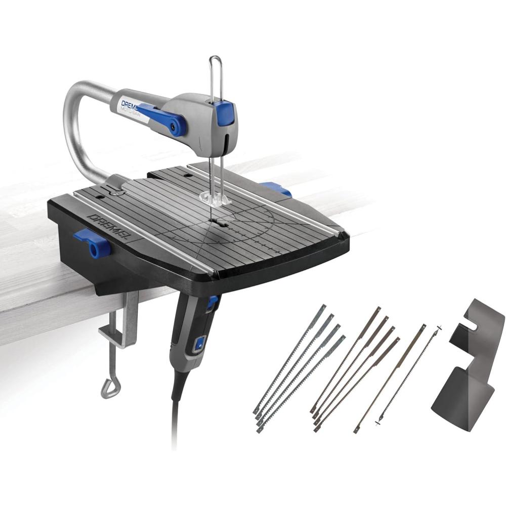 The Dremel Moto-Saw is a multi-functional scroll saw and coping saw in one. It offers a compact and easy solution for making detailed cuts in a variety of materials, including wood, plastic, laminates and metal. This portable, precision saw is easy to store, set-up, and operate and features a tool-free mechanism for quick blade changes. An auto-tensioning feature keeps the blade taut and ready to cut so you don’t have to make blade adjustments, and its slim, ergonomic handle with comfort grip provides control in any cutting position. The Moto-Saw functions as a stationary scroll saw, yet it can be removed from its base to become a portable electric coping saw.